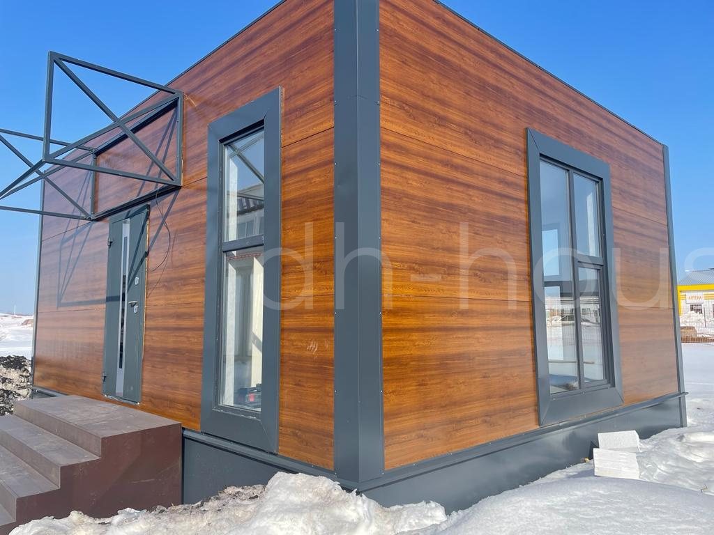 Как и все небольшие модульные одноэтажные дома, EFFECT LIGHT 44 имеет простую форму фасада, что в сочетании с плоской кровлей придает зданию стильный и современный вид. Высокие окна позволяют визуально расширить внутреннее пространство и наполнить его светом. Проект быстровозводимого дома предусматривает максимальный комфорт семье из 2-3 человек. Типовая планировка может быть изменена по согласованию с заказчиком. Строительство модульного дома специалистами компании Doorhan может быть завершено за 1 месяц месте с фундаментом и всеми подготовительными работами.